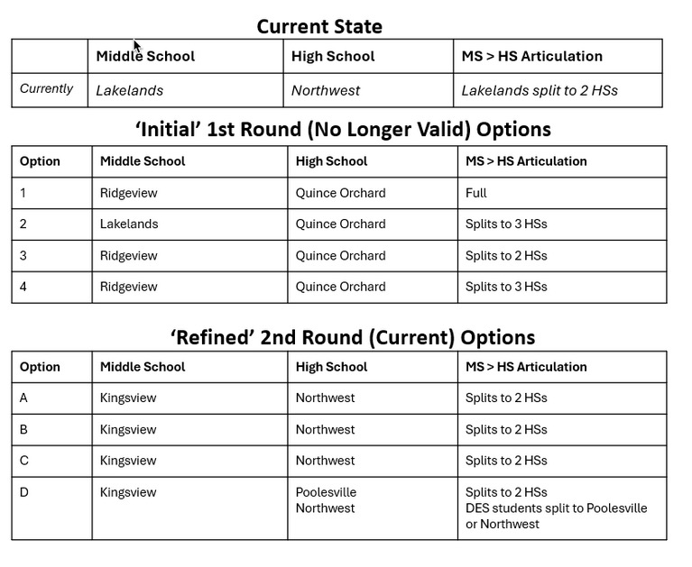 Northwest HS, Quince Orchard HS, and all feeder middle schools and elementary schools (including Darnestown and Jones Lane)